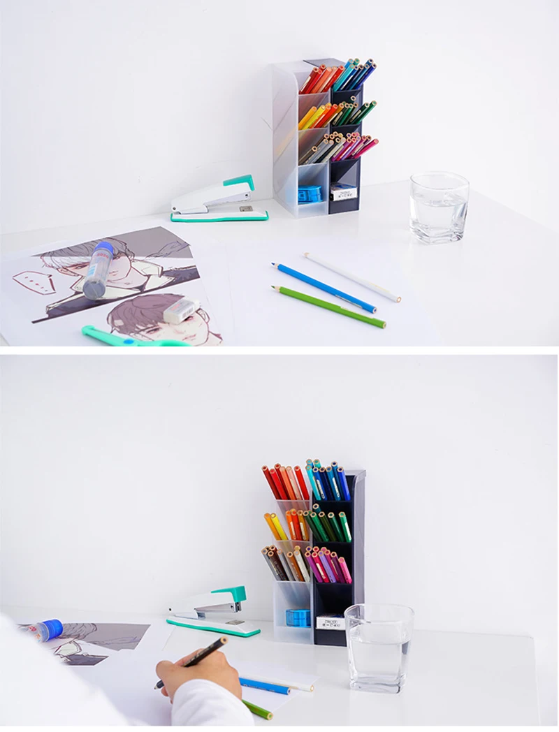 4. Peut accueillir divers articles sur le bureau: divers stylos d’écriture, colle/ciseaux, etc. fournitures de bureau selon la classification des couleurs, y compris le stylo de marque, le plomb de couleur, etc.