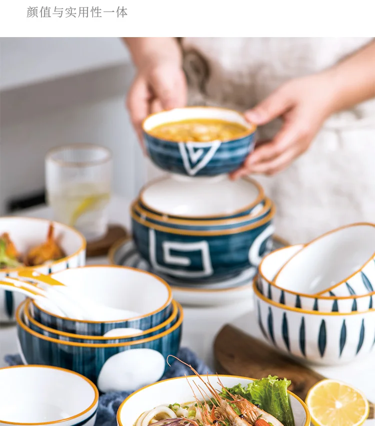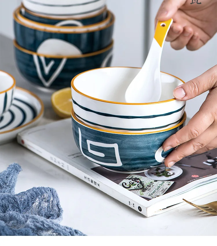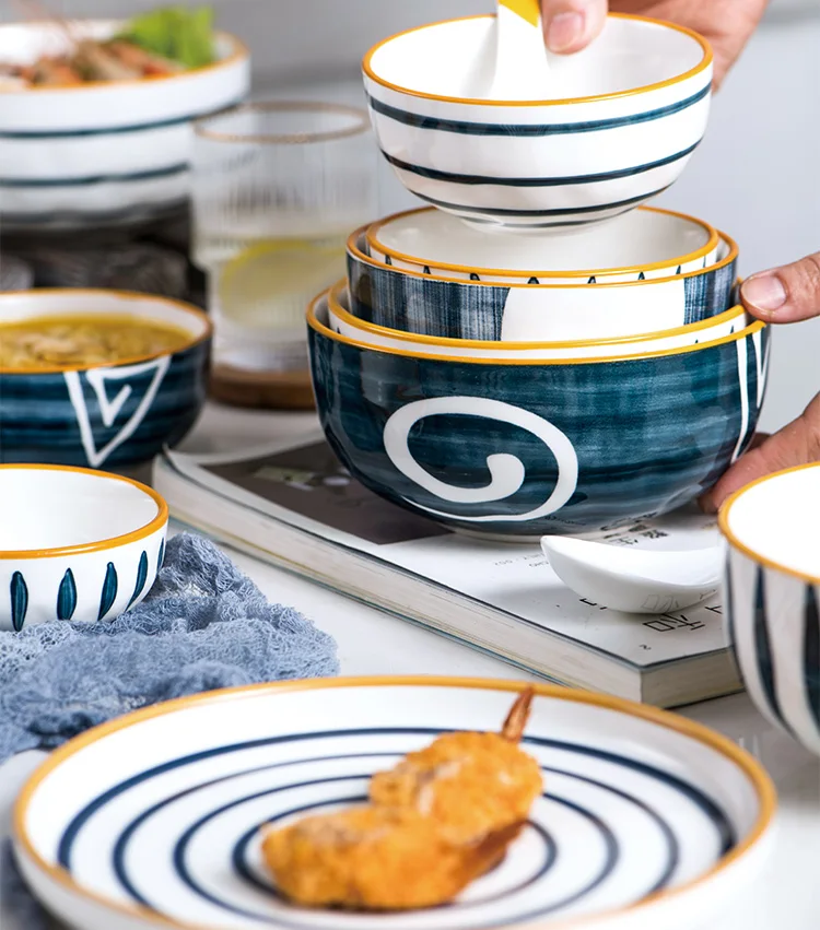 Bol a nouille japonais en céramique, bol à riz, à dessert ramen 17cm grand bol à salade 1600lm bol à soupe 4.5/1/5/5 pouces petit bol