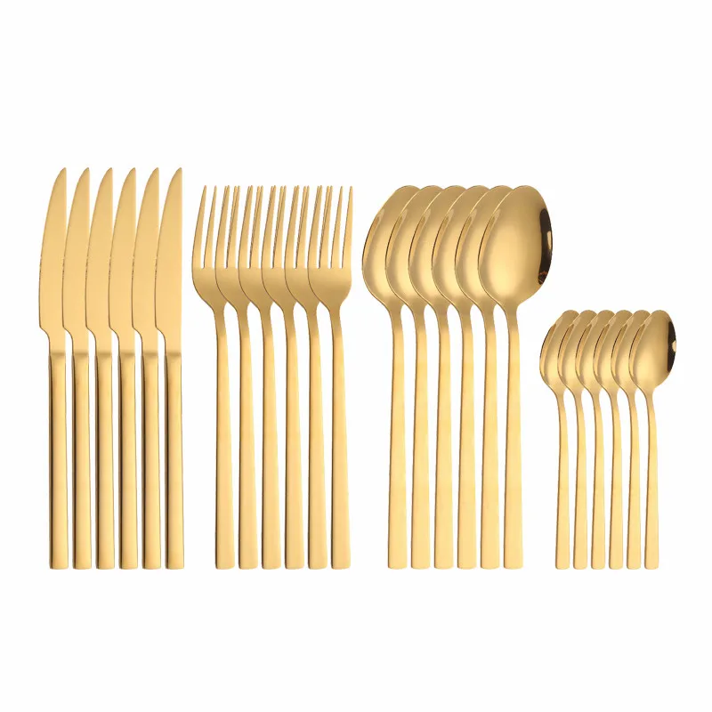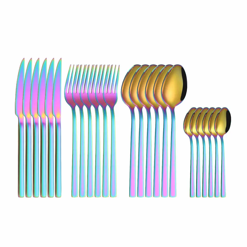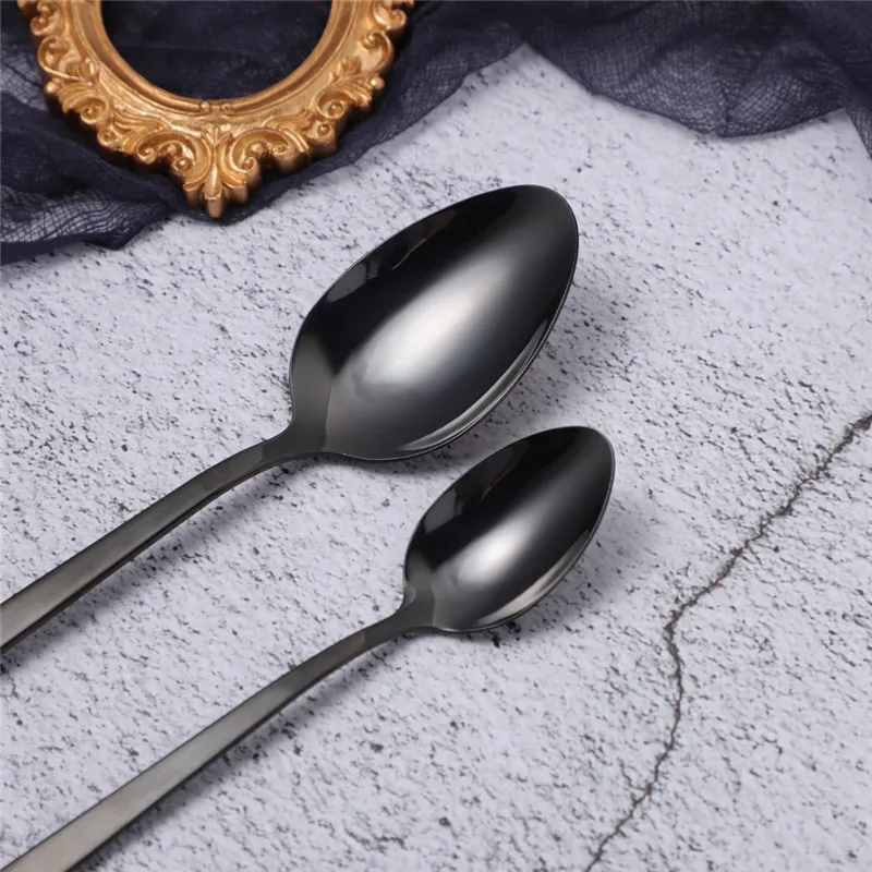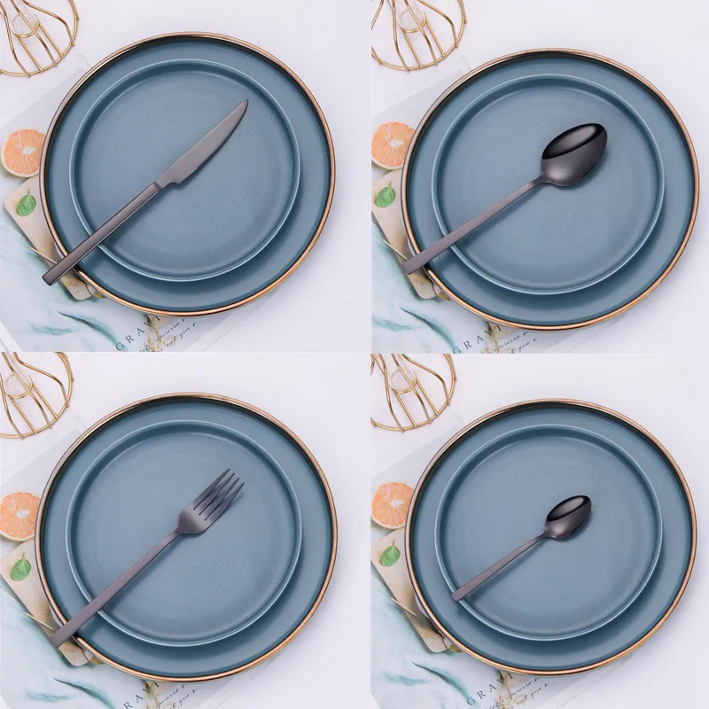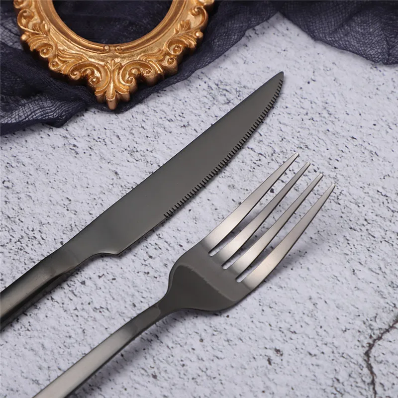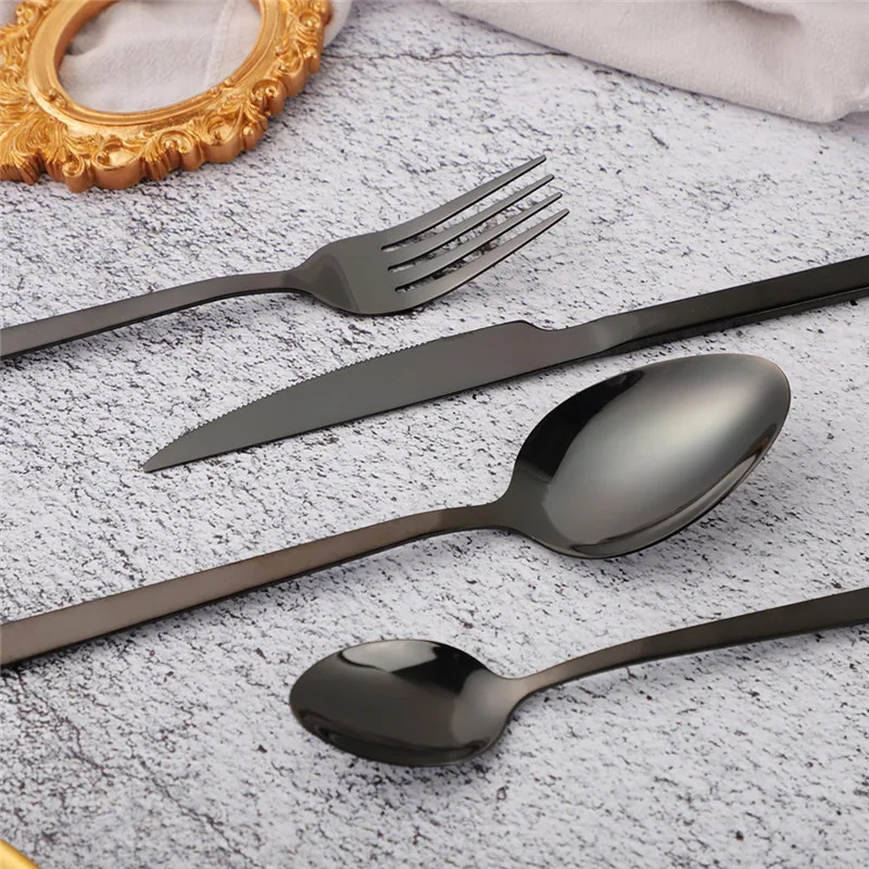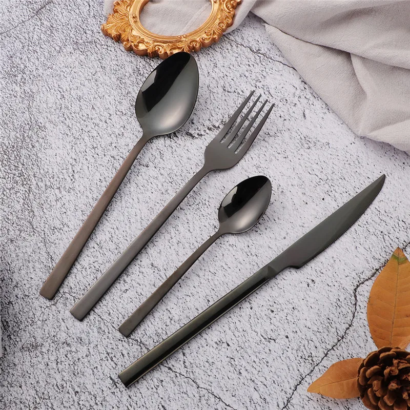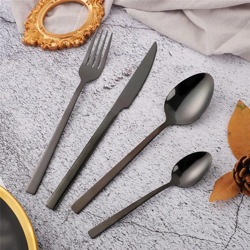 couvert de table en acier inoxydable, 24 pièces, noir
