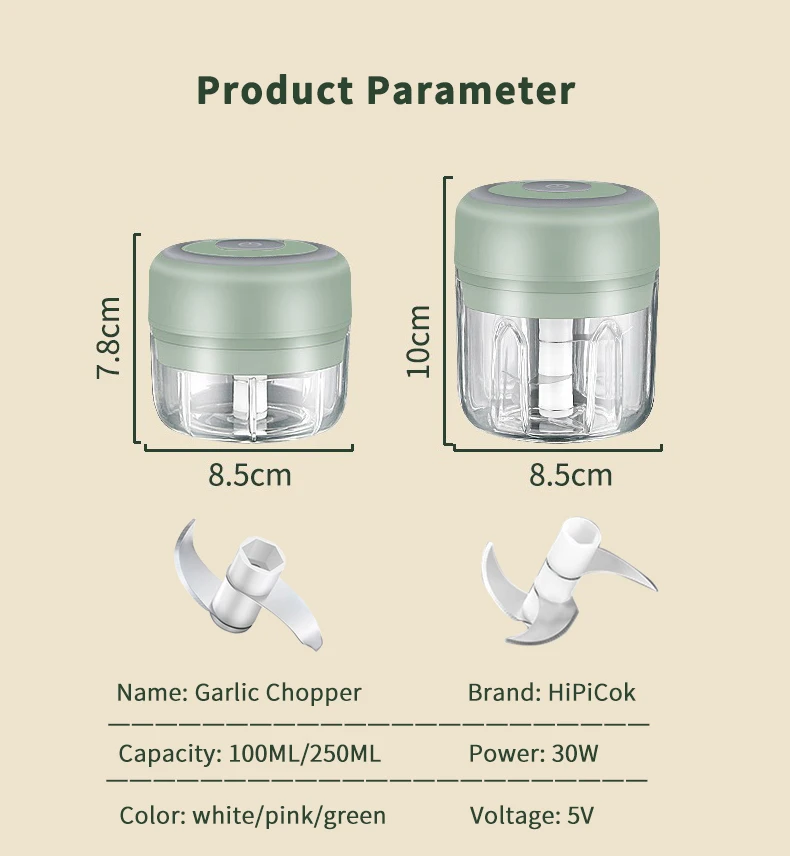 Hachoir à ail électrique Portable 100/250mL, avec chargeur USB, pour viande et légumes, Gadgets de cuisine