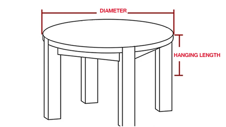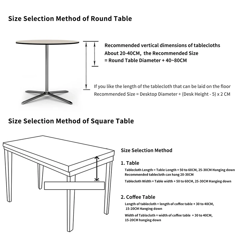 - Pour un ajustement optimal, choisissez un diamètre de nappe = diamètre de table + 50-60 cm.