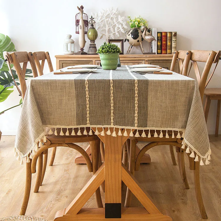 La nappe recouvre votre table tout en ajoutant un style raffiné grâce à ses glands et sa dentelle. Le tissu en lin-coton offre une bonne respirabilité, un toucher doux et un entretien simple pour une utilisation quotidienne ou festive.