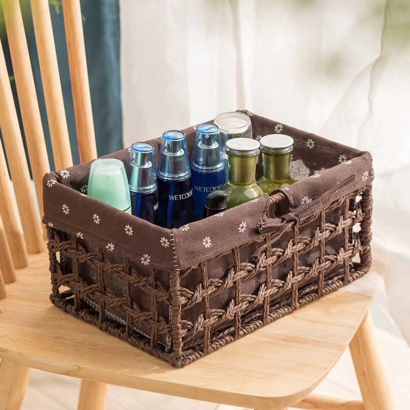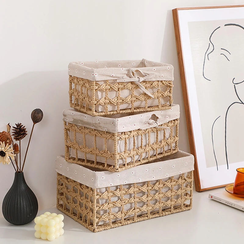 Panier de Rangement tissé fait à la main, organisateur d’articles divers de bureau, boîte de Rangement de Snacks cosmétiques panier rangement