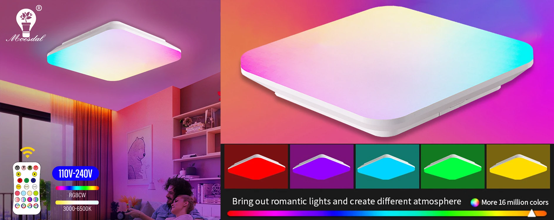 Plafonnier carré RGBCW, si vous avez besoin de cliquer sur l’image ci-dessous pour acheter